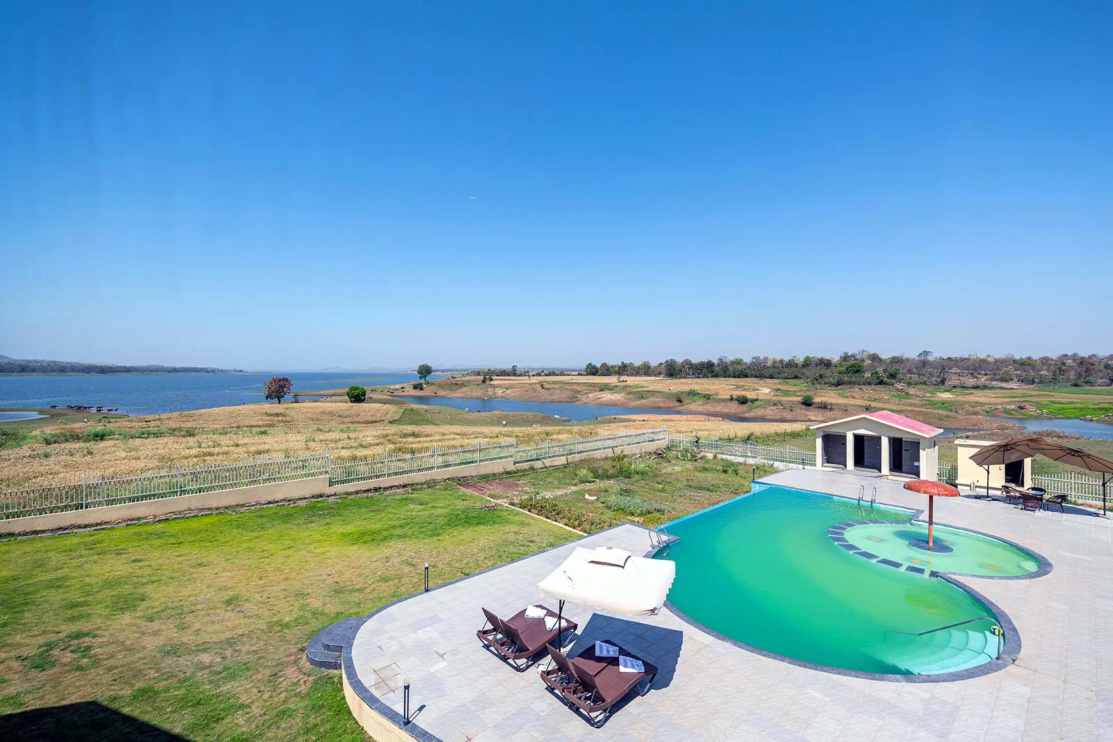 Parijat By Goldmark, Madhai — a scenic riverside resort nestled on the edge of the Denwa River near Satpura Tiger Reserve in Madhya Pradesh, India. It’s part of the Goldmark Group of Hotels and offers a peaceful nature getaway with comfortable accommodations and modern amenities amid lush wilderness.